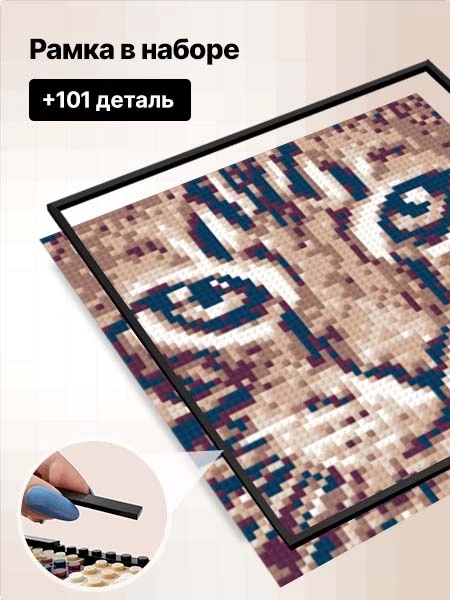 А еще! Элегантная черная рамка для вашей картины поставляется сразу в комплекте, помимо внешней привлекательности, рамка - это еще и дополнительный инструмент для более надёжного крепления отдельных частей конструктора. В этой серии все продумано до мелочей!