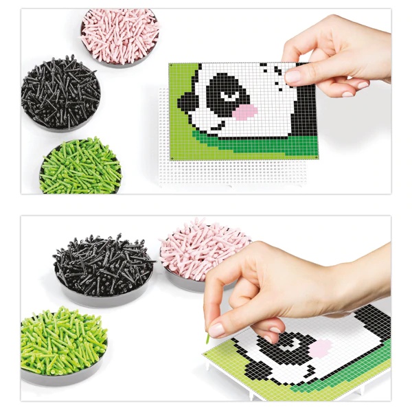 Этот яркий набор для занятий мозаикой от итальянской компании Quercetti понравится вашему ребенку! Создайте картинку с милой Пандой в стиле Kawaii с помощью пластиковых колышков! Колышки бывают семи цветов.