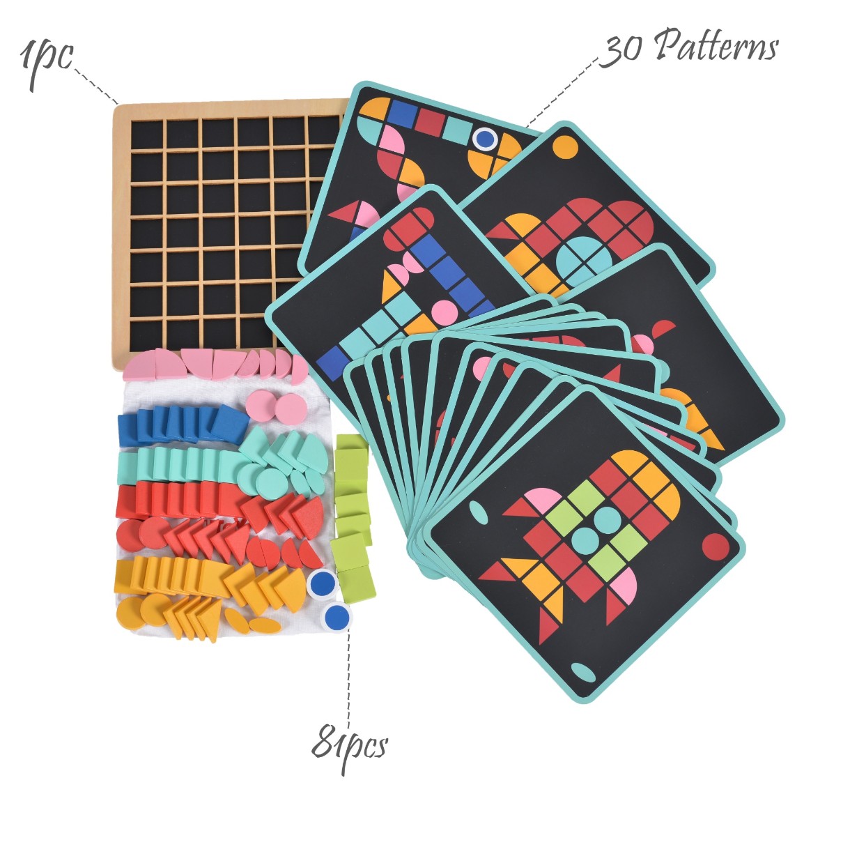 Мозаика от Tooky Toy "Формы" приведет в восторг вашего ребенка и не позволит ему скучать. Набор включает деревянную доску, 15 листов с двусторонним принтом и 80 деревянных плиток различных цветов и форм.