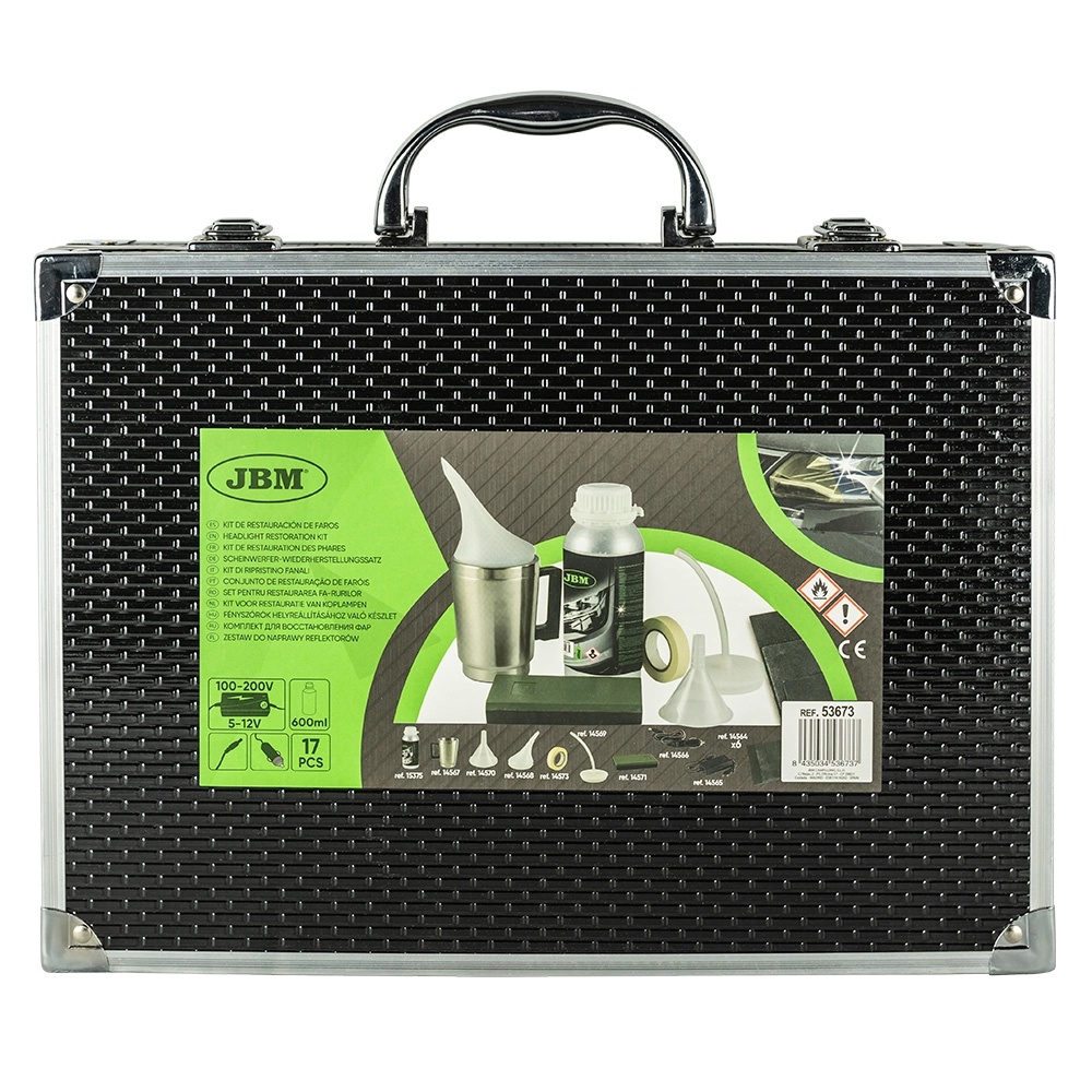 Комплект для восстановления фар на основе жидких полимеров JBM — это инновационная система для восстановления выгоревших на солнце фар до их первоначального состояния, с