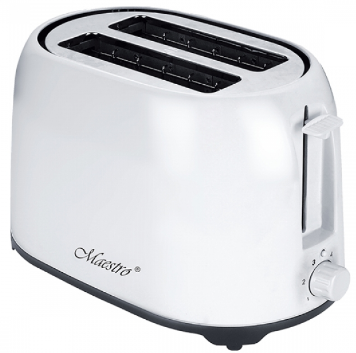 Тостер Maestro MR-702 — компактный и стильный, легкий в использовании, поможет быстро и просто приготовить великолепный завтрак. В этой модели предусмотрены два отсека для тостов и съемный поддон для сбора крошек, что существенно упростит чистку тостера. Специальный механический подъемник позволяет безопасно извлечь хлеб из прибора. В тостере предусмотрены 6 режимов поджаривания, благодаря которым можно подобрать оптимальную степень прожарки хлеба.
