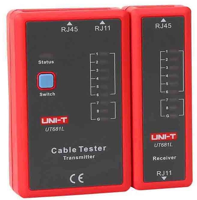 Тестер кабеля UNI-T UT681L — профессиональный тестер, использующийся для проверки кабельных линий интернет и телефонных линий с интерфейсом RJ45 и RJ11 на предмет замыкания, обрыва, скрещивания и т. д.