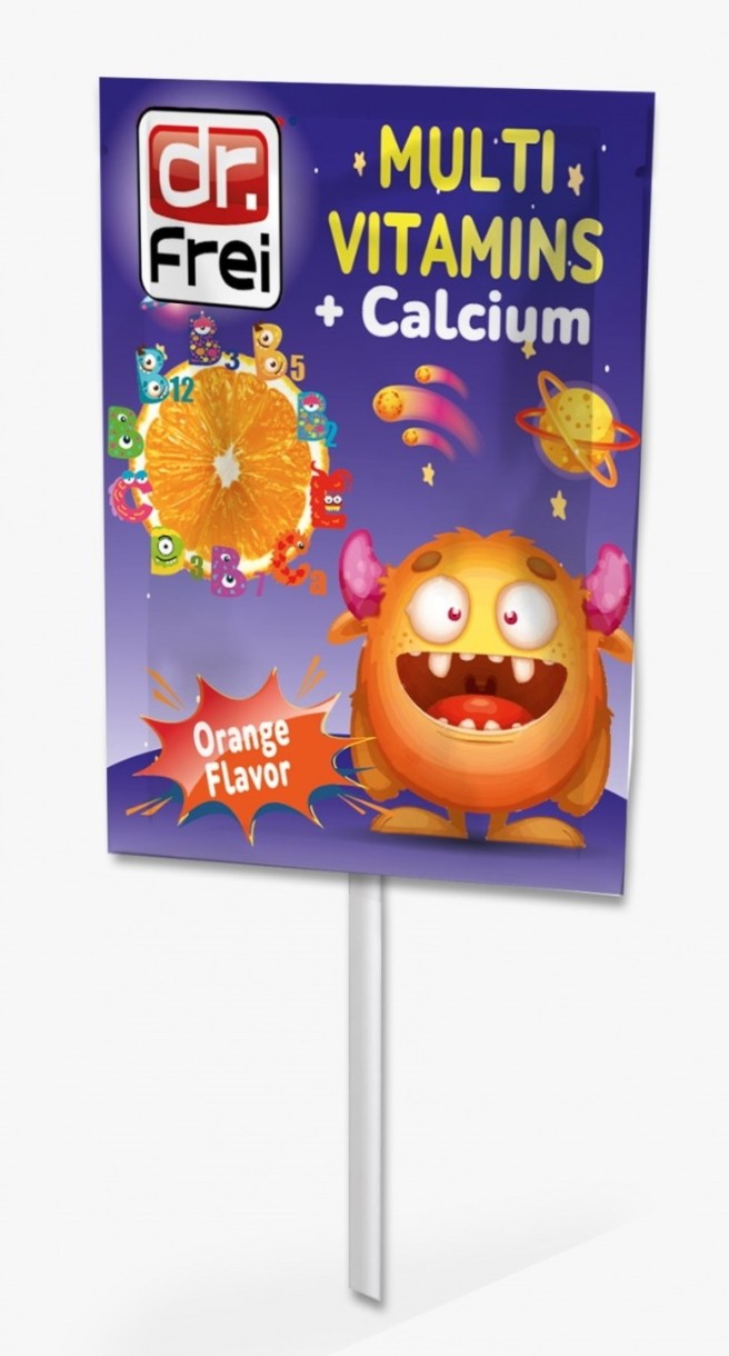 Эти леденцы на палочке содержат 10 важных витаминов и кальций для здорового роста, гармоничного развития и укрепления иммунной системы у детей старше 3 лет.