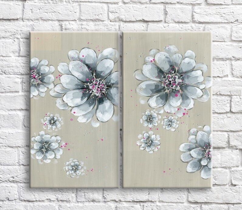 Картина Magic Color White/Gray chrysanthemums on a Gray background, diptych (3467631)