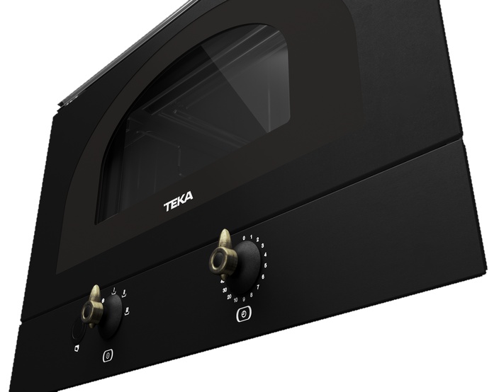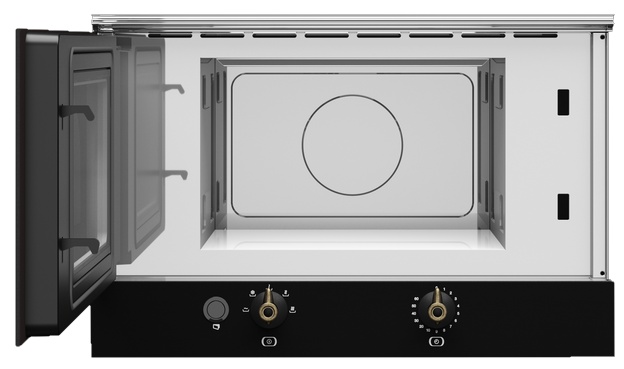 Встраиваемая микроволновая печь MWR 22 BI AB цвета антрацит с фурнитурой под состаренную бронзу. Таймер, разморозка по времени и электронное открывание дверцы делают управление техникой комфортным.