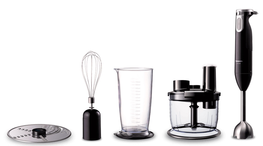Погружной блендер Panasonic MX-SS40BTQ «4-в-1» легко заменит полноценный кухонный комбайн, при том, что он гораздо компактнее и удобнее в хранении. Четыре насадки — для измельчения, взбивания, смешивания и шинковки/нарезки овощей, фруктов, орехов и др. — призваны помочь повару в решении рутинной задачи подготовки продуктов. Чтобы ничто не отвлекало от кулинарного творчества!