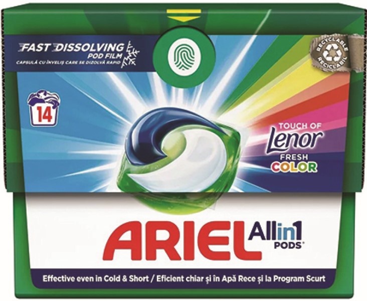 Капсулы для стирки Ariel All-in-1 Pods Touch of Lenor Fresh Color 14pcs фото №1 — интернет-магазин Desire.md