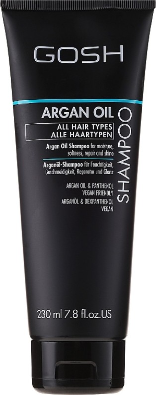 Шампунь с аргановым маслом Gosh не только превосходно очищает волосы, но также интенсивно воздействует на пряди, оздоравливая их по всей длине и стимулируя деятельность волосяных фолликулов.