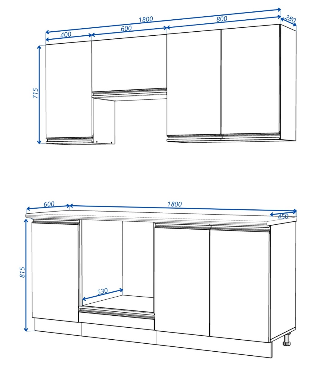 - Шкаф верхний B№ 10 (сушка): 800x715x280 мм