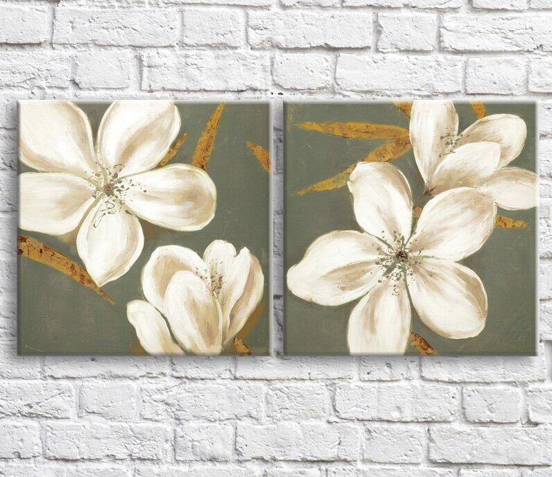 Картина Magic Color White lilies in oil on Olive background, diptych (3467663)