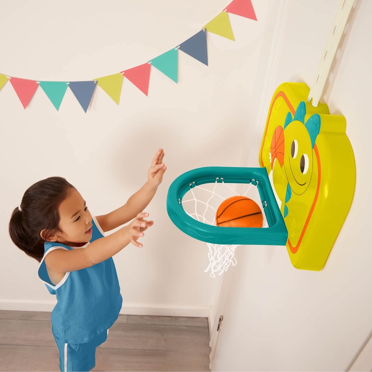 Выберите свое место и сделайте бросок с помощью подвесной баскетбольной сетки Dinosaur Dribble от B. Toys! В эту спортивную игру на тему динозавров входит надувной мини-баскетбольный мяч и даже собственный воздушный насос, позволяющий быстро начать игру. Этот удобный баскетбольный набор можно повесить на дверь с помощью входящего в комплект крючка. Он полностью регулируется и может расти вместе с детьми! Поиграйте в игру «HORSE» или подвигайтесь один на один, в любом случае дети будут оставаться активными и работать над важными навыками, такими как зрительно-моторная координация. Превратите любую комнату в баскетбольную площадку с помощью Dinosaur Dribble! Рекомендуется детям от 3 лет и старше.