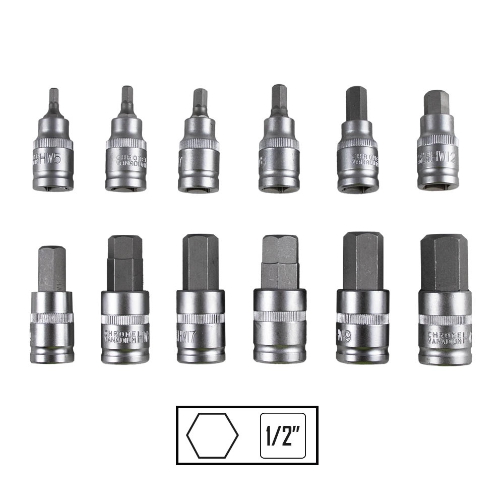 5 mm, 6 mm, 7 mm, 8 mm, 10 mm, 12 mm,