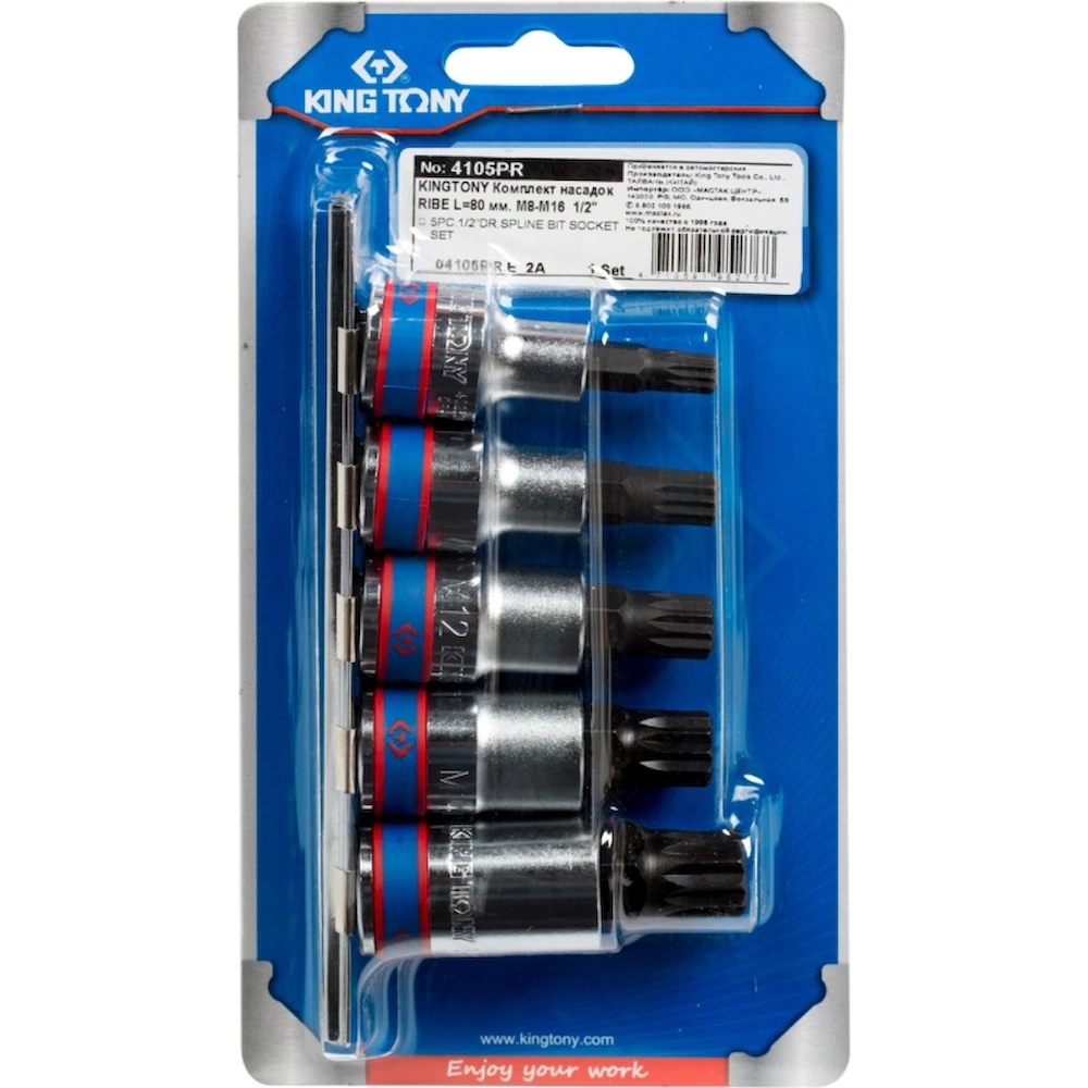 Набор торцевых насадок (1/2", SPLINE, М8-М16, 5 предметов) KING TONY 4105PR представляет собой приспособления для установки крепежа. Специальный держатель упрощает хранение оснастки. Качественный материал увеличивает срок службы головок. Вес набора составляет 0.55 кг. Тип наконечника насадок - SPLINE.