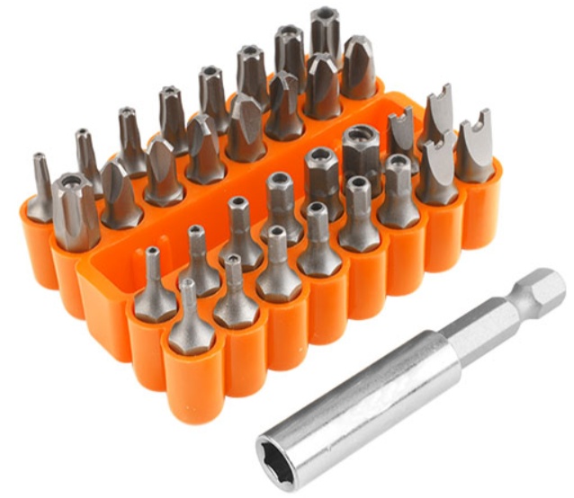 Тип битT8, T10, T15, T20, T25, T27, T30, T35, T40, H2, H2.5, H3, H4, H5, H6, H5/64, H3/32, H7/64, H1/8, H9/64, H5/32