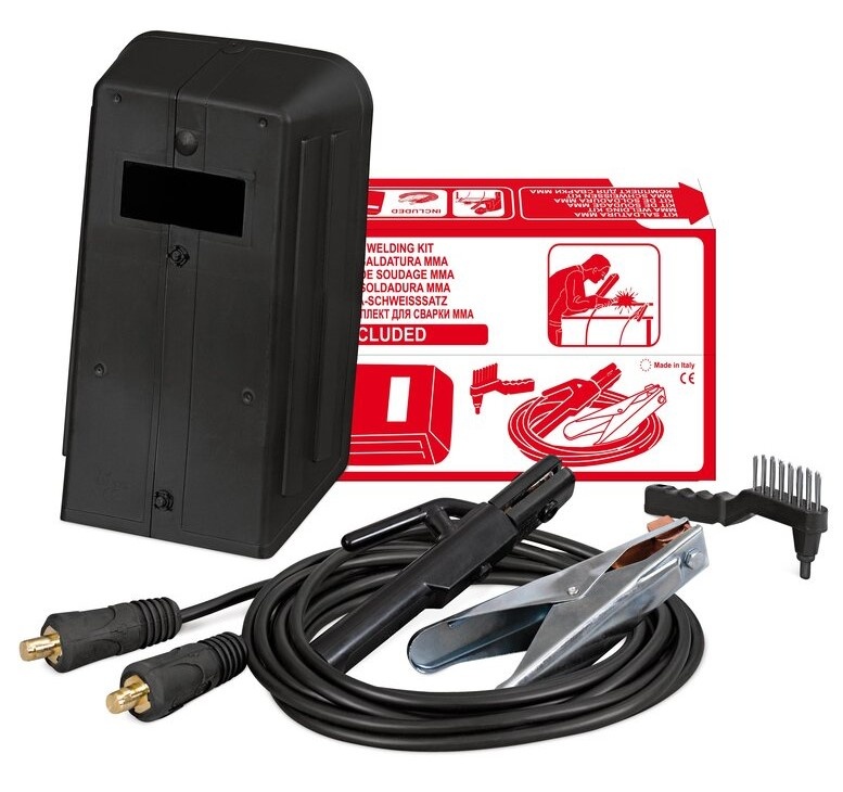 Набор для сварки Telwin 801081 — это комплект аксессуаров для MMA‑сварки, содержащий всё необходимое для работы с электродной сваркой: держатель электрода, кабели питания, зажим «массу», защитную маску и щётку‑молоток для удаления шлака. Он рассчитан на ток до 300 А, сечением кабелей 25 мм² и длинами кабелей 4 м и 3 м, что делает его универсальным для большинства бытовых и полупрофессиональных сварочных аппаратов. Такой комплект упрощает сварку металлоконструкций, ремонт металлоизделий или сварку стального профиля — удобно для гаража, мастерской или стройки.