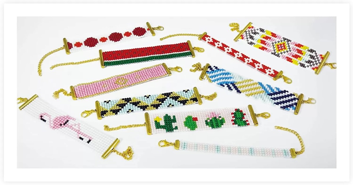 Веселый творческий набор, в который входит станок для бисероплетения и все остальные аксессуары, необходимые для плетения 15 модных браслетов.