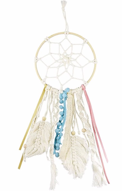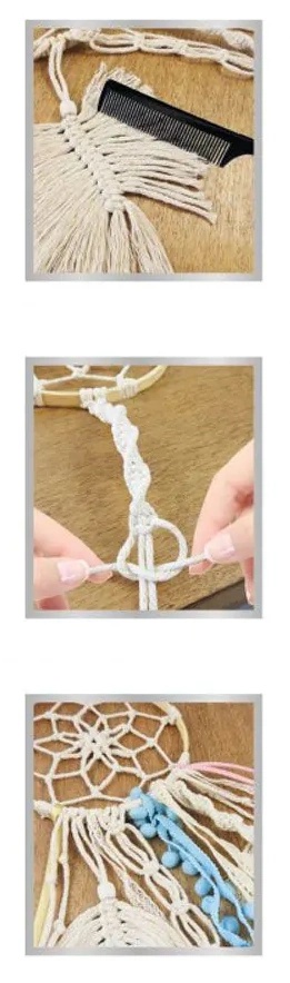 Вяжем ловца снов в технике макраме. Персонализируйте его с помощью лент, помпонов, техник плетения и деревянных бусин! Чтобы упростить задачу, в подробной и иллюстрированной инструкции объясняются различные узлы, используемые в макраме. Диаметр кольца «Ловец снов»: 19 см.