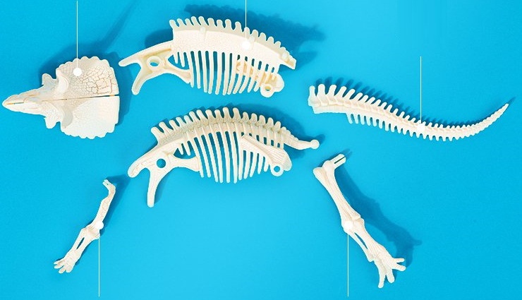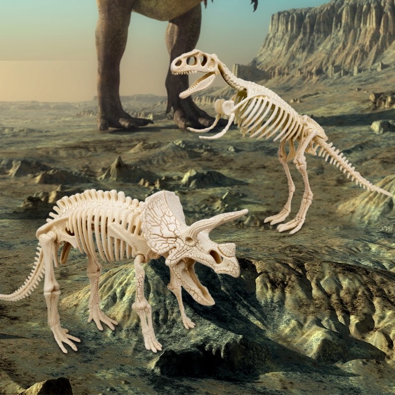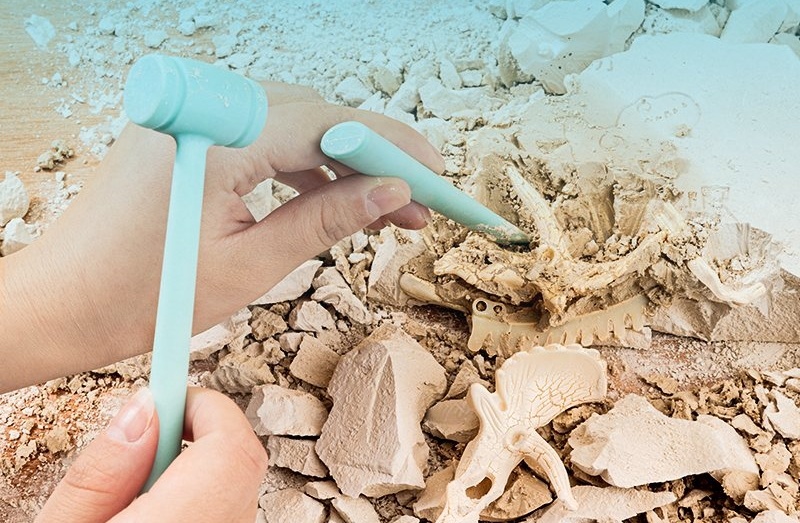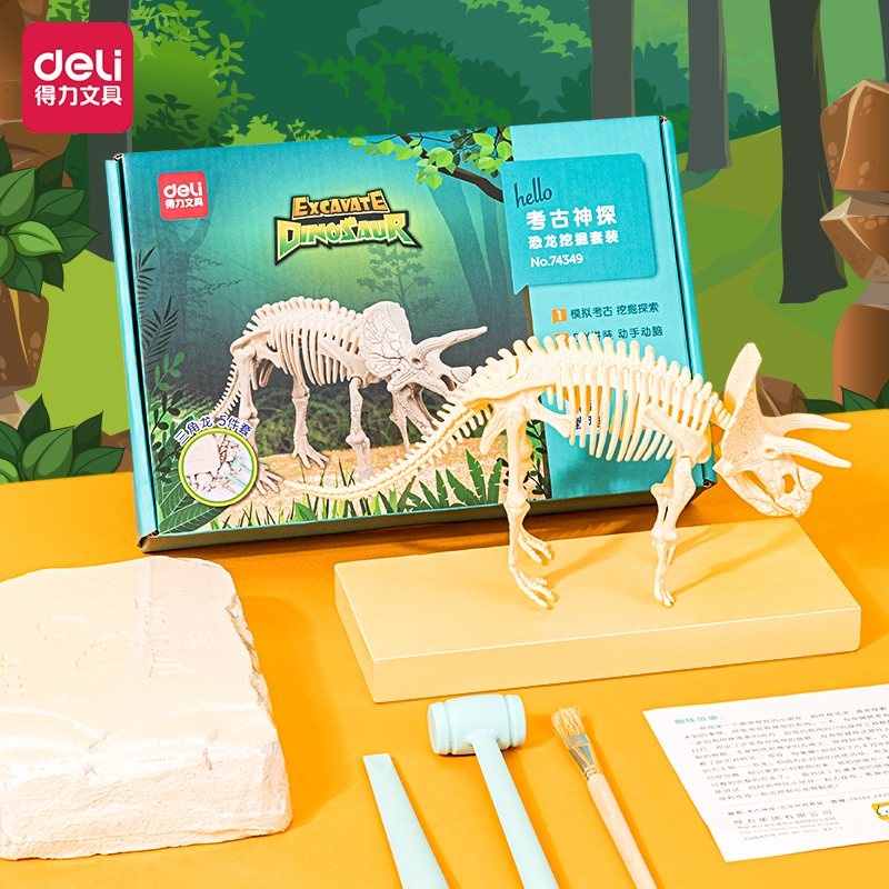 -Набор из 5 предметов: ископаемые скелетные камни, молоток, долото, щетка, инструкция.