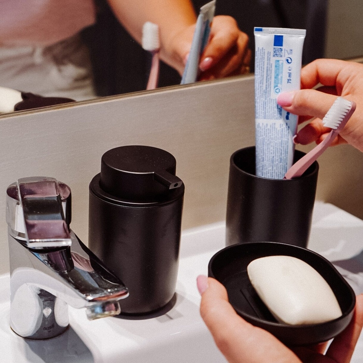 Комплектациядиспенсер, ёршик, мыльница, чашка