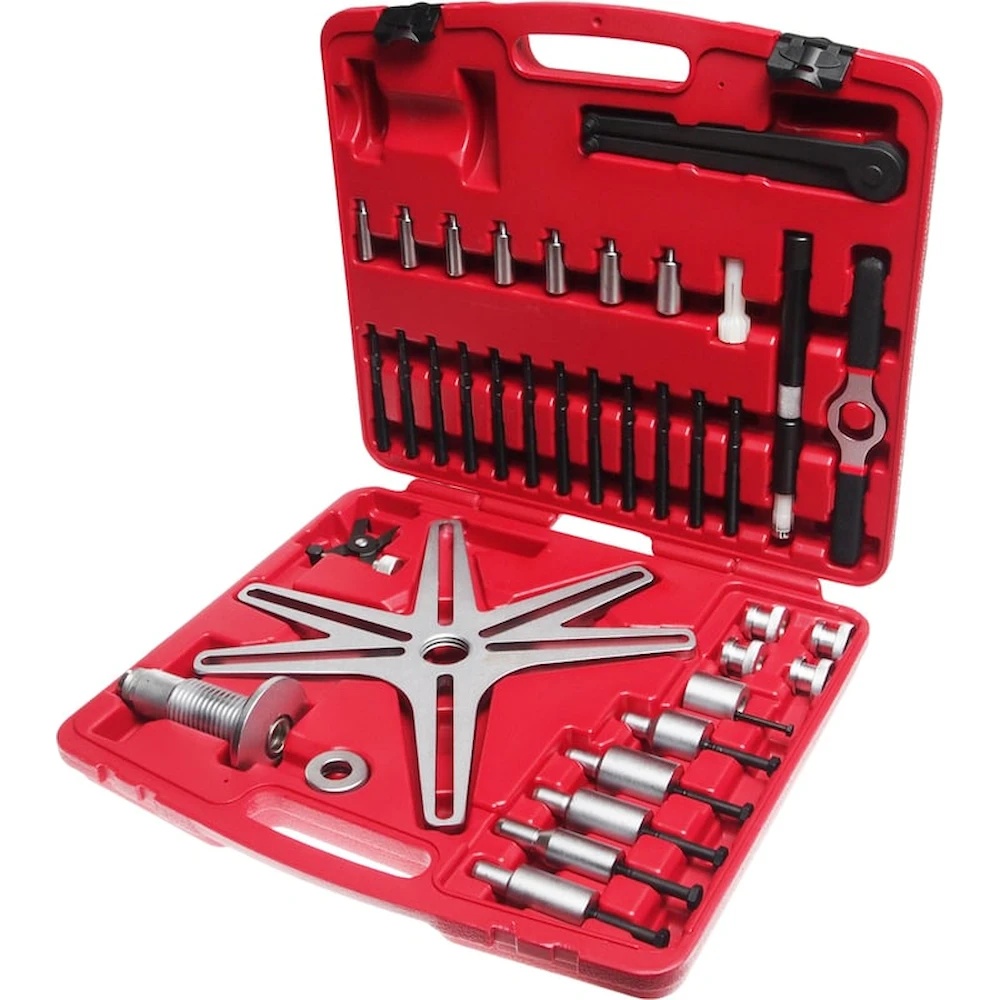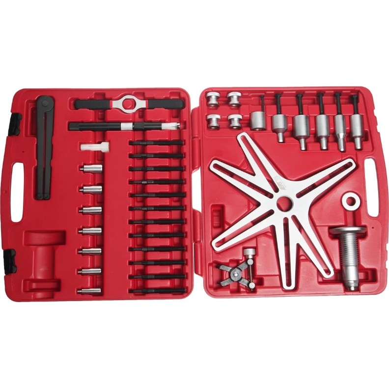 Универсальный набор для установки саморегулирующего сцепления JTC-4497 поставляется в прочном кейсе из пластика, оснащенного рукояткой для транспортировки и защелками для надежного хранения. Комплект из 37 предметов предназначен для установки сцепления у автомобилей SAC на VW, Audi, BMW, Ford, Mercedes, Opel, Renault, Volvo. Изделия набора выполнены из высокопрочной стали, обладающей стойкостью к нагрузкам. Габариты - 425х400х80 мм.