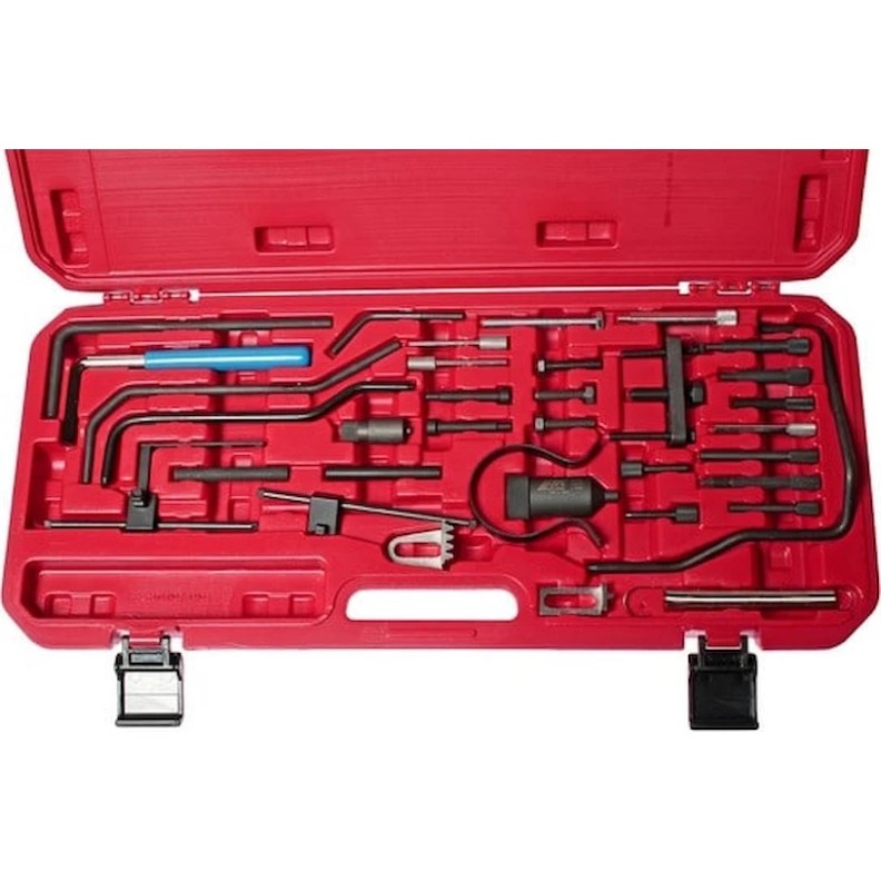 Фиксатор распредвала для установки фаз ГРМ CITROEN, PEUGEOT JTC 4675 - профессиональный авторемонтный набор, позволяющий корректно работать с двигателями Ситроен и Пежо, коды которых EW7J4, EW10J4, EW10J4S, EW10D-HPI, EW12J4. Прочный переносной кейс обеспечивает комфортную транспортировку и безопасное хранение инструментов.