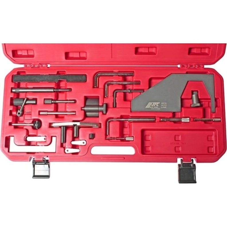 Набор фиксаторов распредвала для установки фаз ГРМ FORD, MAZDA JTC 4676 - комплект для настройки фаз газораспределения двигателей в автомобилях FORD и MAZDA при замене приводного ремня. Пластиковый кейс обеспечивает удобство хранения и транспортировки набора, в его конструкции предусмотрены специальные защелки, исключающие выпадение приспособлений. Габаритные размеры: 595х270х50 мм.