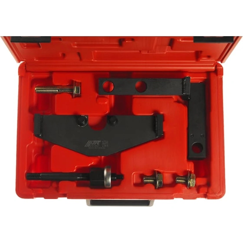 Набор фиксаторов BMW MINI JTC-4762 служит для монтажа и демонтажа распредвала и его элементов. Также комплект предназначен для проверки и установки фаз ГРМ. Фиксаторы изготовлены из прочной стали. Набор используется со следующими двигателями: W10B16AA-2001-06 Cooper, W10B16BA-2001-06 Cooper S, W11B16AA-2001-06 One. Кейс для хранения выполнен из пластика, имеет ручку и защелки.