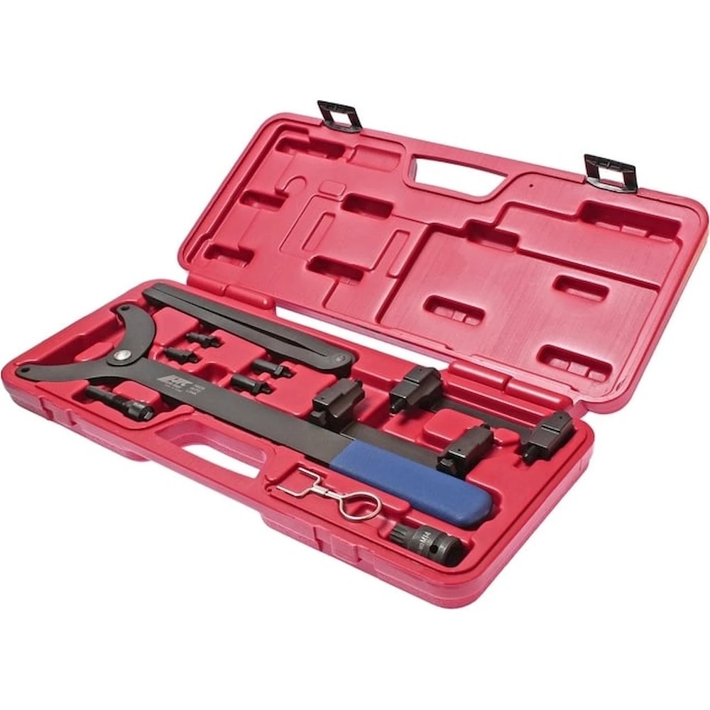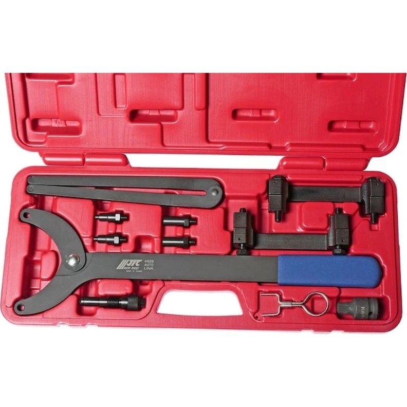 Набор фиксаторов распредвала для установки фаз ГРМ VW, AUDI JTC 4928 - комплект инструментов для синхронизации распределительного вала Volkswagen Audi Gruppe 3,2 FSI с двигателем AUK, A6L/Quattro 2,4 с двигателем BDW. Пластиковый кейс обеспечивает удобство хранения и транспортировки набора, в его конструкции предусмотрены специальные защелки, исключающие выпадение приспособлений.