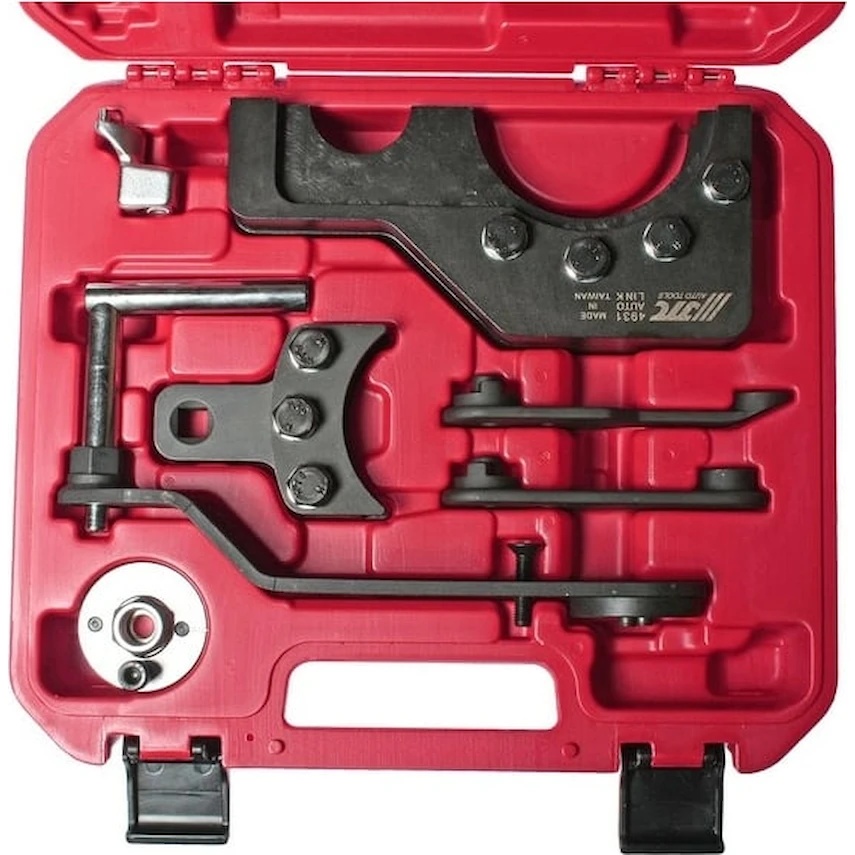 Набор для снятия и установки зубчатого колеса распредвала VW (T5 TOUAREG, TRANSPORTER 2.5, TDI PD, 4.9D/TDI) JTC-4931 используется для быстрого и качественного монтажа/демонтажа зубчатого колеса, входящего в состав системы ГРМ автомобилей марки Volkswagen с различными типами двигателей: BPD, AXD, AXE, BAC, BPC, BLJ и AYH. Каждый компонент набора надежно зафиксирован в индивидуальной ячейке прочного переносного кейса, что наряду со специальными защелками гарантирует сохранность комплекта во время транспортировки. Помимо основной функции, может также использоваться для снятия и закрепления коленчатого вала.