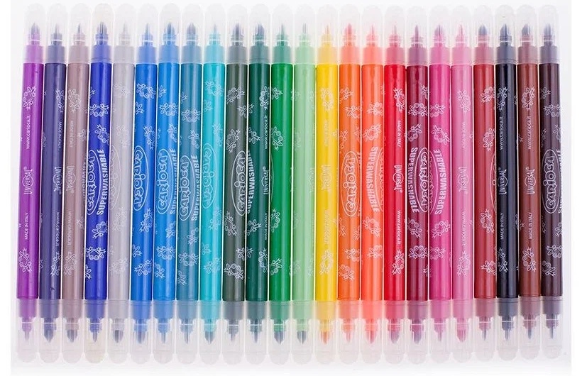 Цветные фломастеры для рисования на бумаге. Идеальны для детей от 3-х лет. Благодаря тому, что фломастеры на водной основе, они легко смываются с большинства материалов и кожи. Вентилируемый колпачок обеспечивает безопасность при использовании фломастеров ребенком (не перекрывает доступ кислорода в случае попадания колпачка в дыхательные пути). Фломастеры Carioca двусторонние с тонким и средним наконечниками.