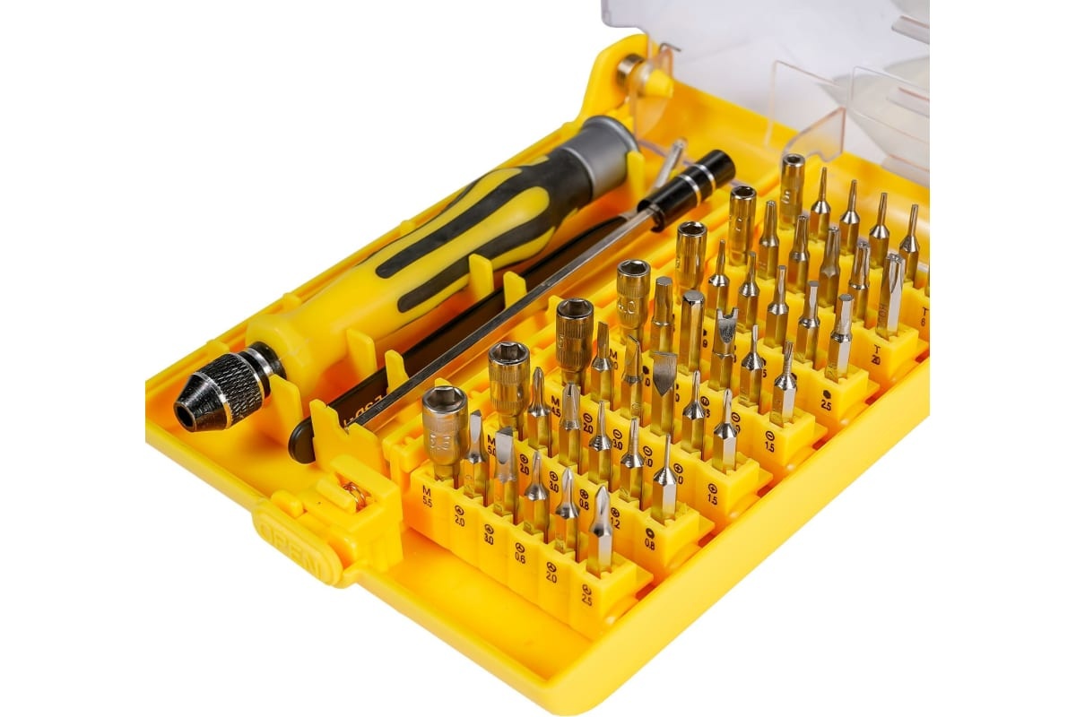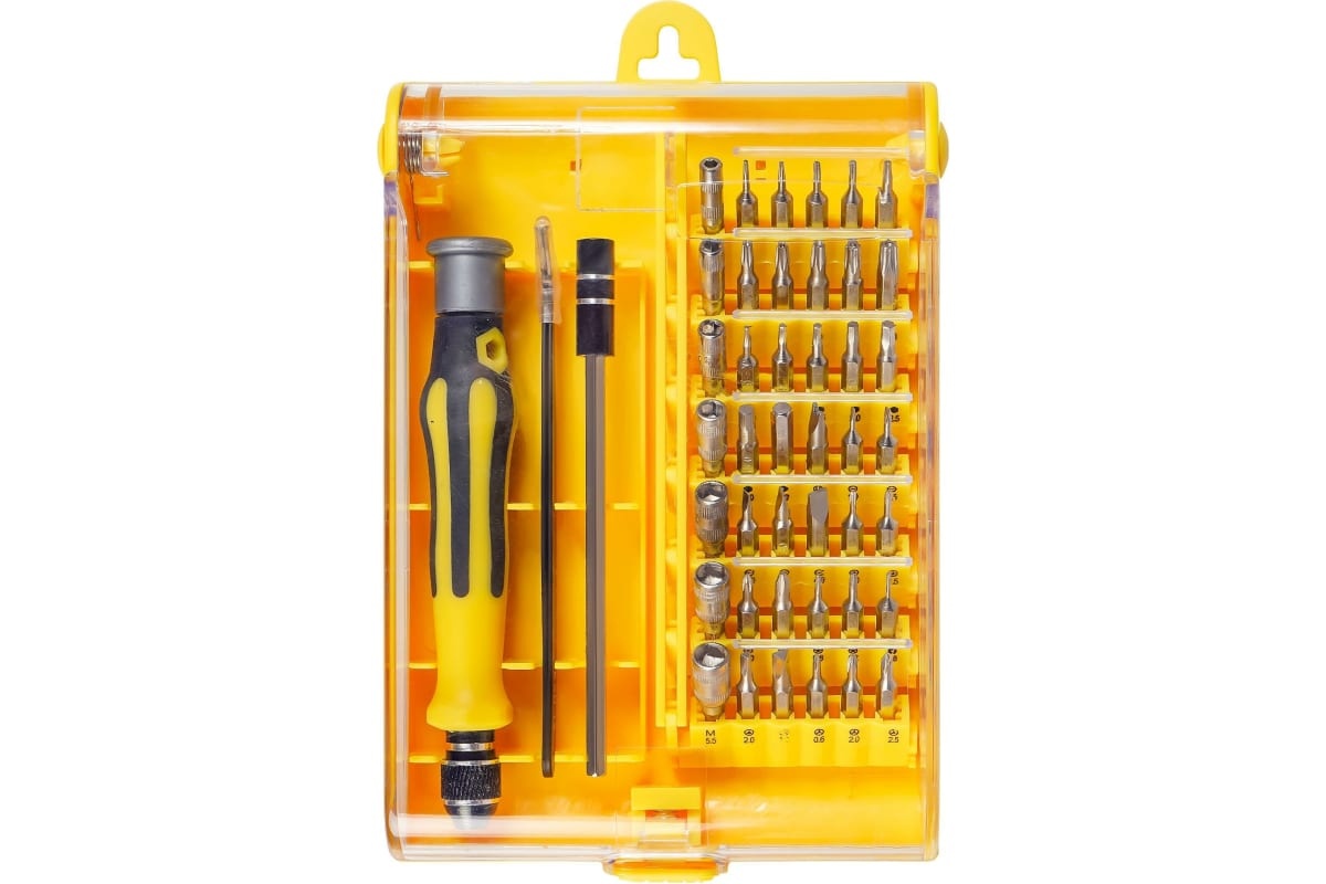 Универсальный набор со сменными битами-вставками малых размеров, позволяет работать с мелким крепежом в точной механике.