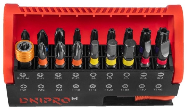 Тип битPH2-M, PH1, PH2, PH3, H4, H5, H6, SL4, SL6, PZ1, PZ2, PZ3, TT10, TT15, TT20, TT25, TT30, TT40