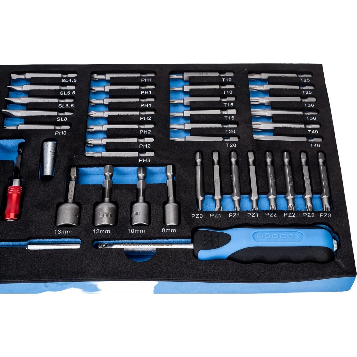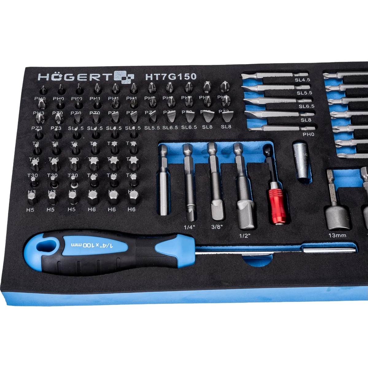 Набор отверток, бит и адаптеров HOEGERT TECHNIK ложемент EVA, 107 шт. HT7G150 подходит для инструментальных тумб и содержит широкий выбор отверток и множество необходимых принадлежностей. Набор необходим в инструментальном шкафу каждого профессионала.