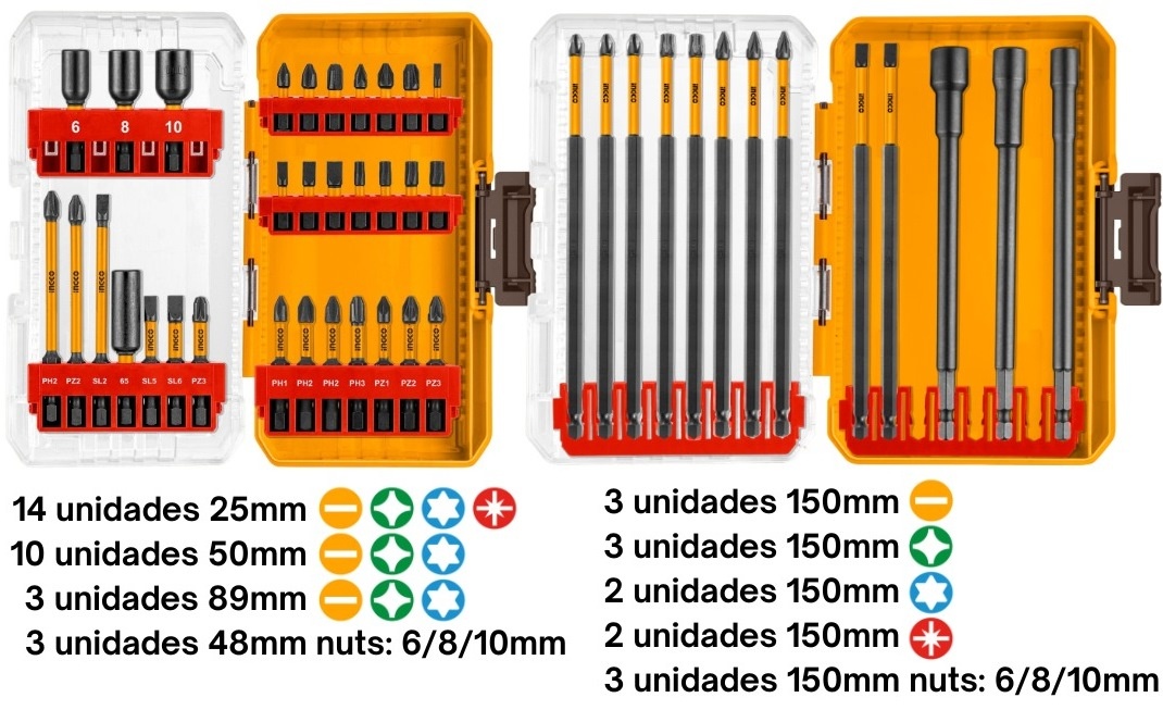 - 14 шт. 25мм: PH1/2/3, PZ1/2/3, SL3/4/5/6, T20/T25/T27/T30