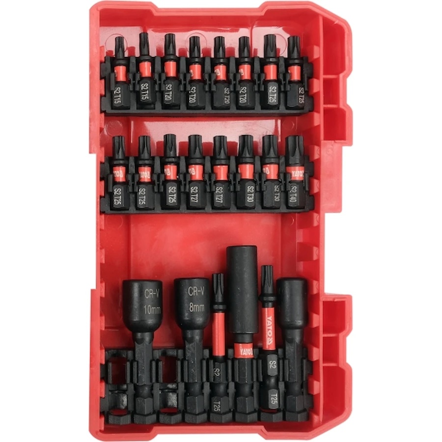 Набор ударных бит YATO YT-04617 из 54 предметов — это профессиональный комплект оснастки, предназначенный для работы с ударными шуруповертами (импактами). Основное преимущество набора заключается в использовании высококачественной стали S2, которая обладает повышенной ударной вязкостью и долговечностью по сравнению со стандартными битами.