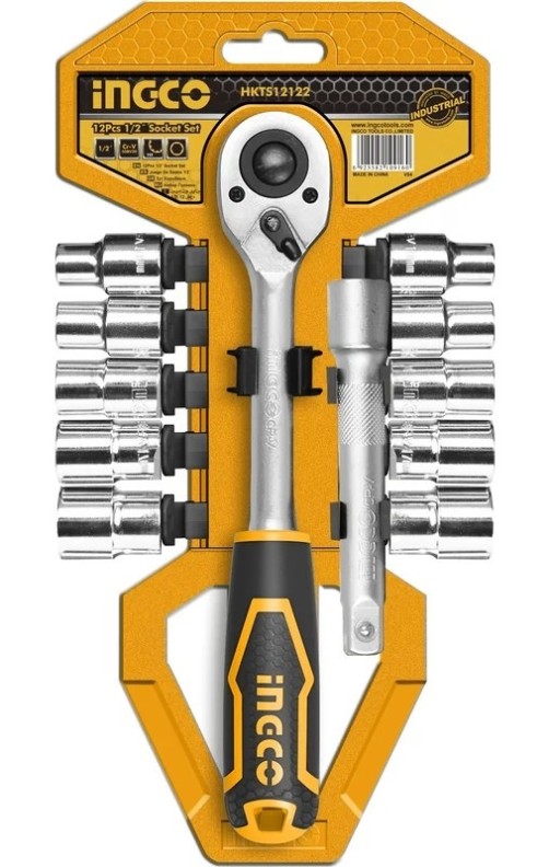 Набор головок INGCO INDUSTRIAL 1/2, с трещоткой, 12 шт HKTS12122 используется для монтажа и демонтажа резьбовых соединений. Рабочие элементы изготовлены из высококачественной хромванадиевой стали 50BV30.