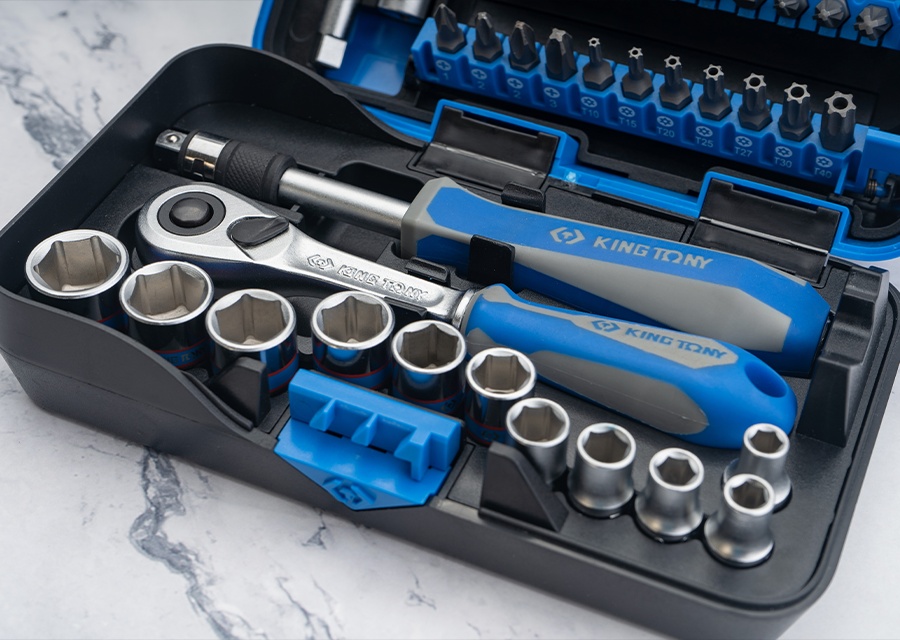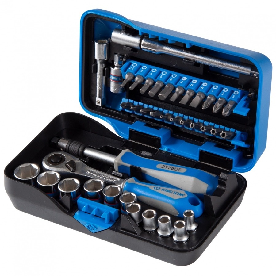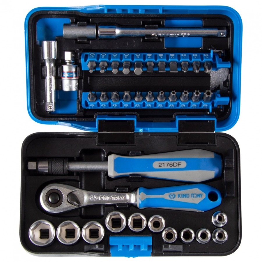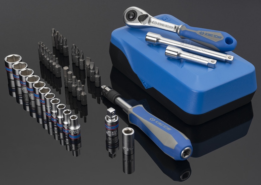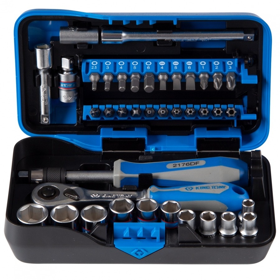 Набор торцевых головок с принадлежностями KING TONY серии ATOM 1/4", шестигранные, 5-14 мм, 39 предметов 2539MR-AM используется для широкого спектра работ по ремонту и монтажу. Подходит для профессионального применения на станциях технического обслуживания автомобилей (СТО), автосервисах, автомастерских, промышленности, производства.