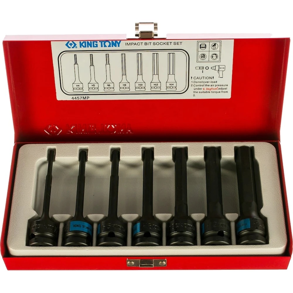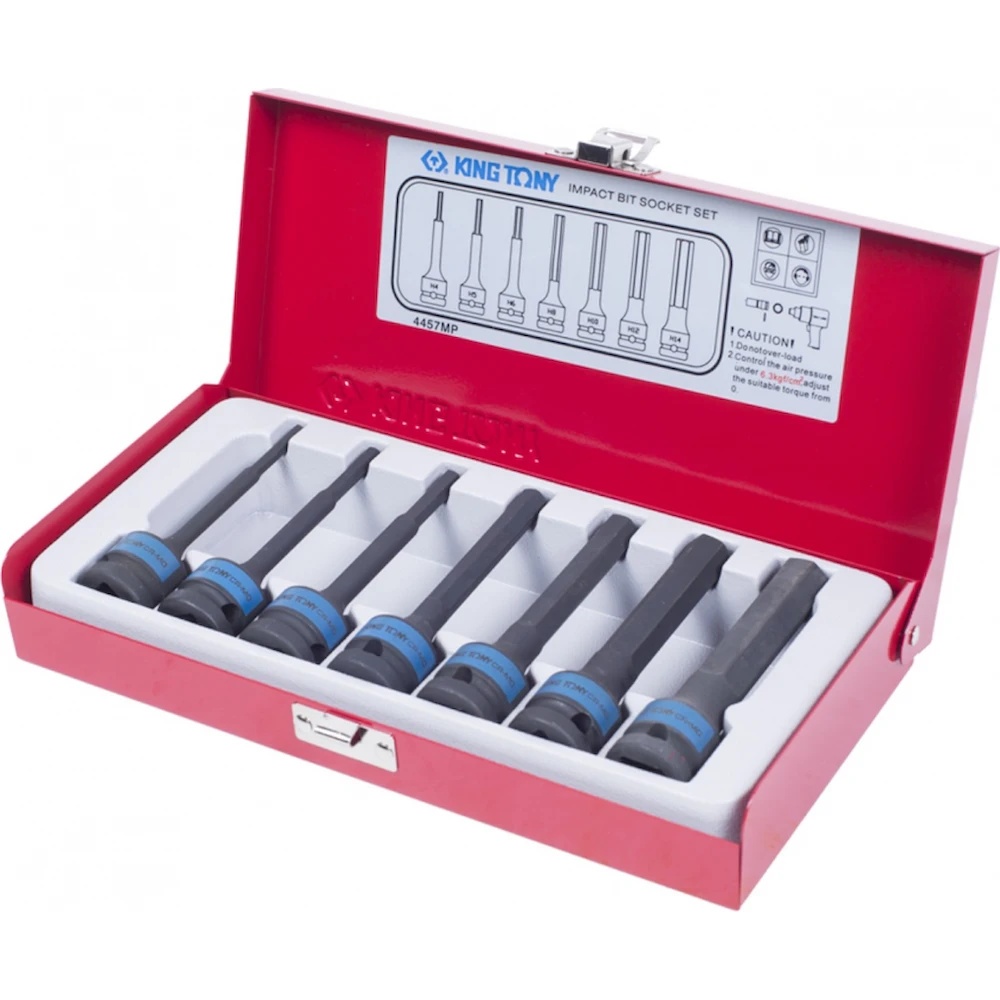 Набор ударных торцевых насадок KING TONY 4407MP предназначен для работ с крепежом имеющим внутренний шестигранный профиль HEX. Для проведения слесарно-монтажных работ с механическим приводом ударного действия, высоконагруженными или осложненными соединениями.