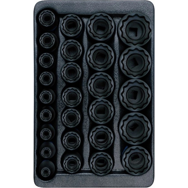 Набор торцевых 12-гранных головок ударных 27 шт, 8-36 мм, 1/2" DR KING TONY 4827MP используется для работы пневматическим или электрическим гайковёртом, а также прочими инструментами или методами с применением ударной нагрузки.