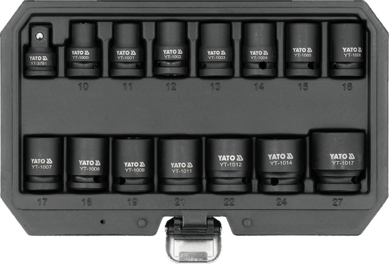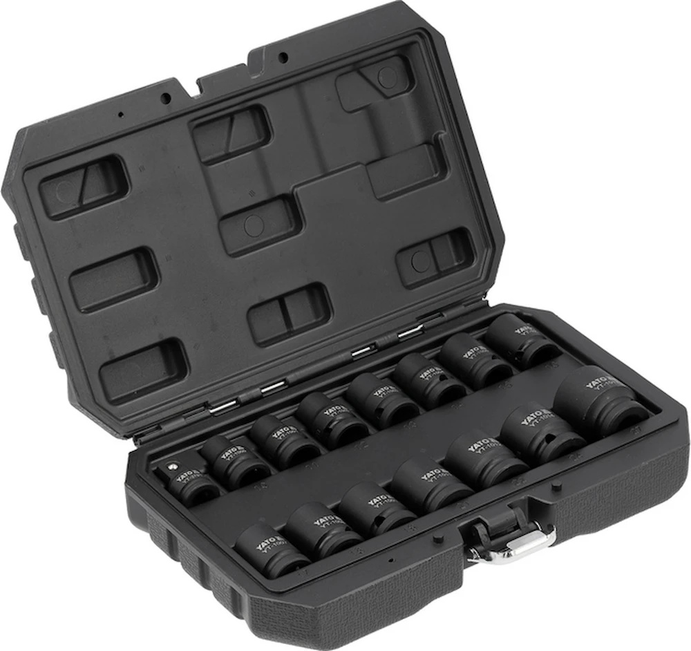 Ударные головки Yato YT-10253 – это незаменимый инструмент для каждого мастера, который ценит надежность и качество. Изготовленные из прочной стали CR-MO, они обеспечивают долговечность и устойчивость к высоким нагрузкам. Эти головки идеально подходят для работы с гайками и болтами, позволяя легко справляться с закисшими или поврежденными крепежами. Набор включает в себя головки различных размеров от 10 до 27 мм, что делает его универсальным решением для множества задач.