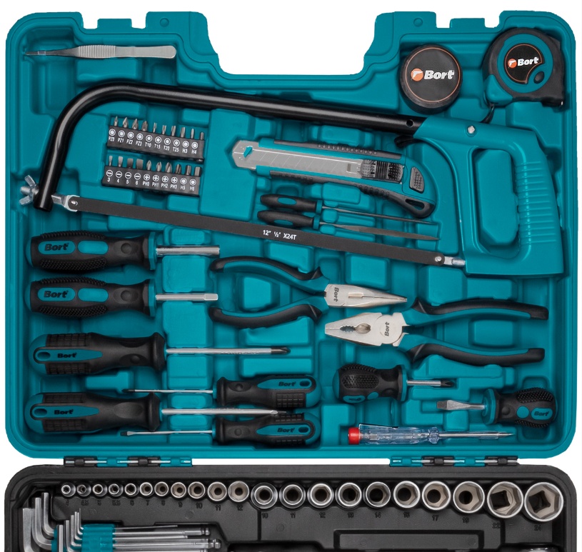 Набор ручного инструмента BORT BTK-86 93412888 предназначен для профессионального и бытового использования. Инструменты набора выполнены из качественной хромованадиевой стали. Материал отличается высокой прочностью и долговечностью. Инструмент поставляется в прочном пластиковом кейсе с защелками для рационального хранения и транспортировки.