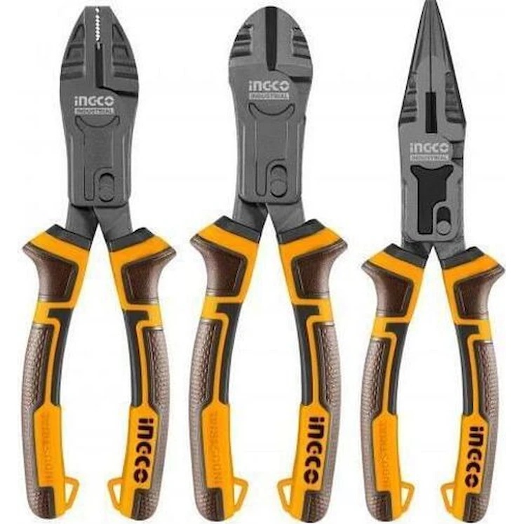 Набор плоскогубцев INGCO HKCPS5831 включает 3 инструмента с усиленным механизмом compound action, что позволяет экономить до 65% усилий по сравнению с обычными плоскогубцами. Изготовлены из прочной Cr-V стали с тефлоновым покрытием, защищающим от износа и коррозии.