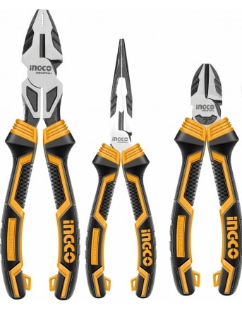 Набор шарнирно-губцевого инструмента усиленные 3 пред. INGCO HKHLPS2832 INDUSTRIAL - комплект шарнирно-губцевого инструмента, состоящий из трех предметов: комбинированных плоскогубцев, бокорезов и длинногубцев.