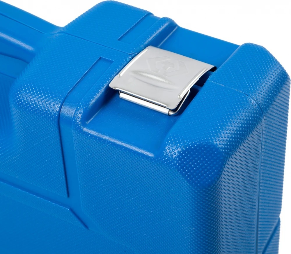 • Кейс из пластика марки PE-HD (полиэтилен высокой твёрдости) – прочный, стойкий к воздействию агрессивных жидкостей, не теряет физических свойств при низких или высоких температурах окружающей среды. Конструкция кейса усилена рёбрами жёсткости и снабжена четырьмя металлическими замками CLIP-LOCK.