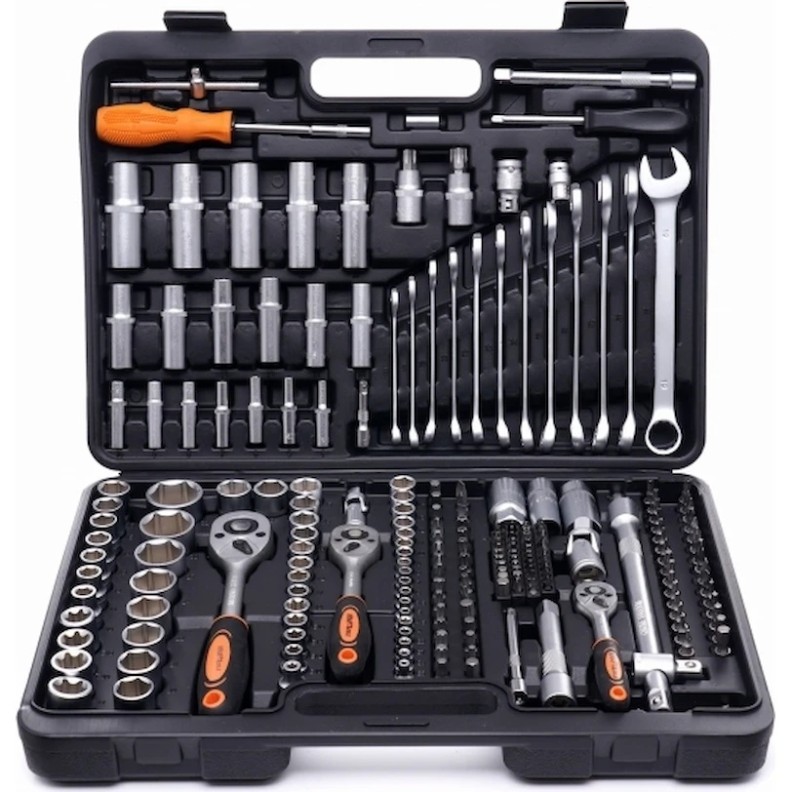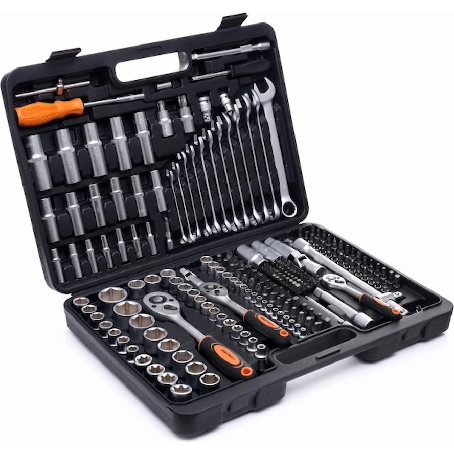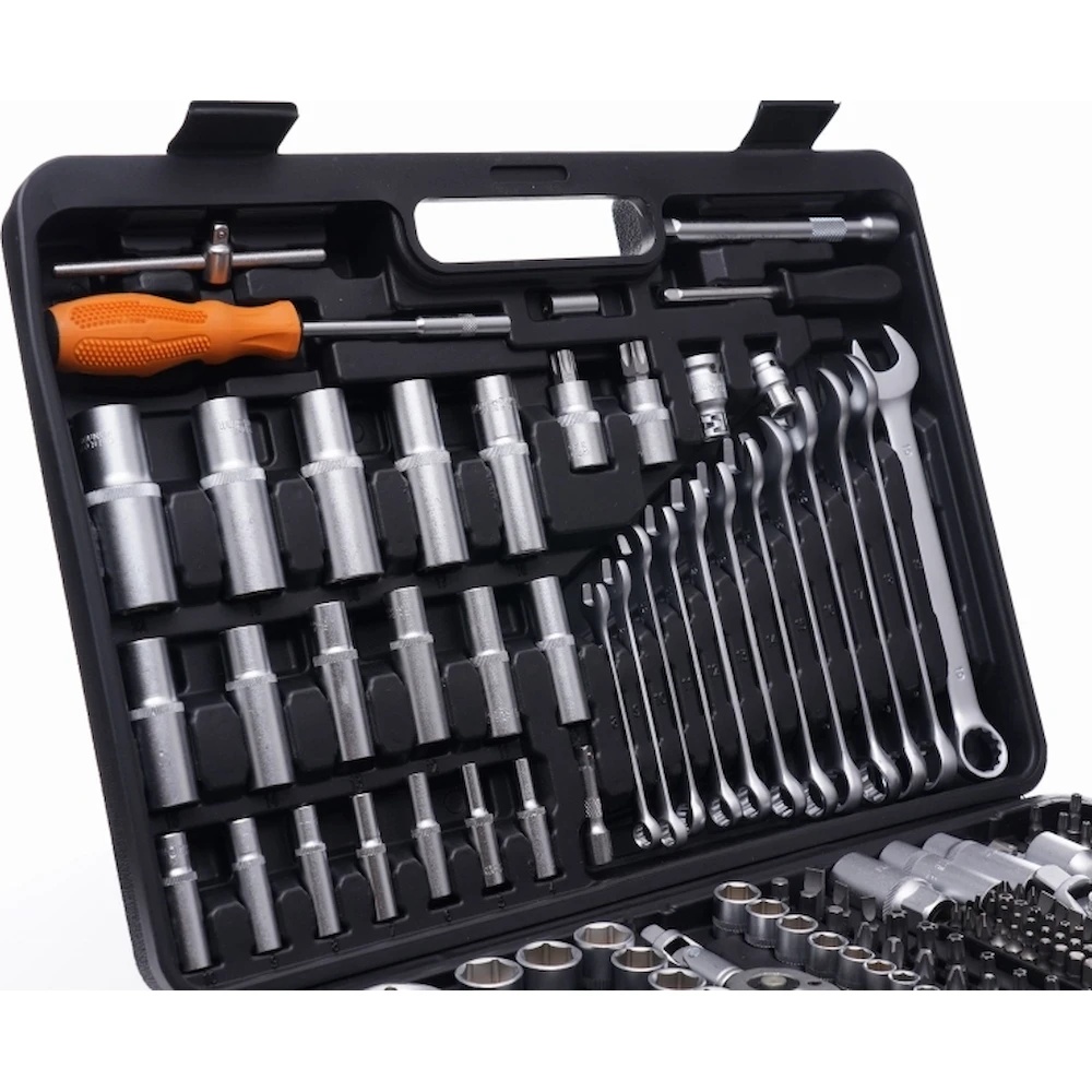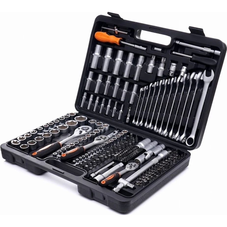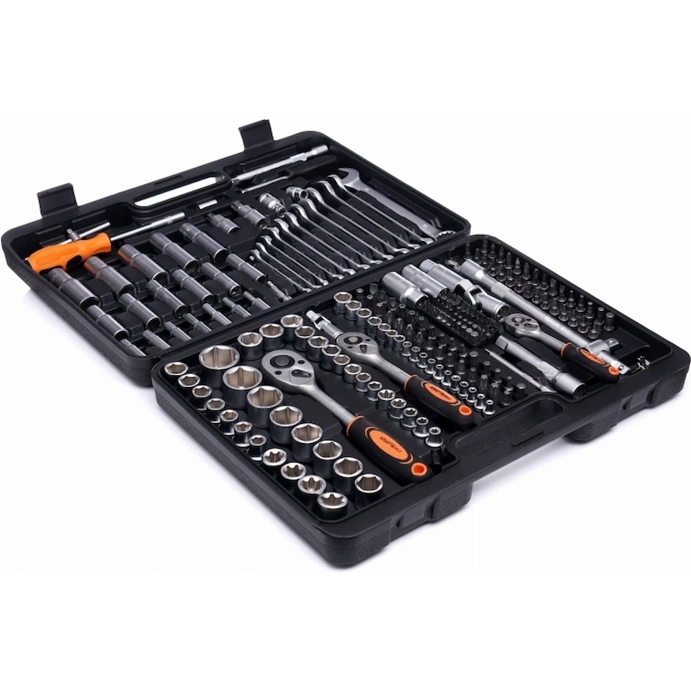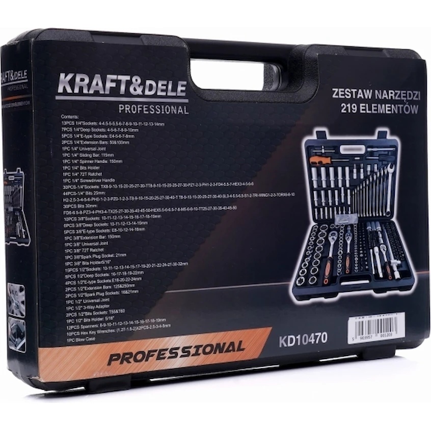Kraft&Dele KD10470 — это универсальный набор инструментов из 219 предметов, предназначенный как для профессионального использования в мастерских, так и для бытовых нужд. Инструменты изготовлены из прочной хромованадиевой стали (CrV), что обеспечивает устойчивость к коррозии, износу и высоким температурам.