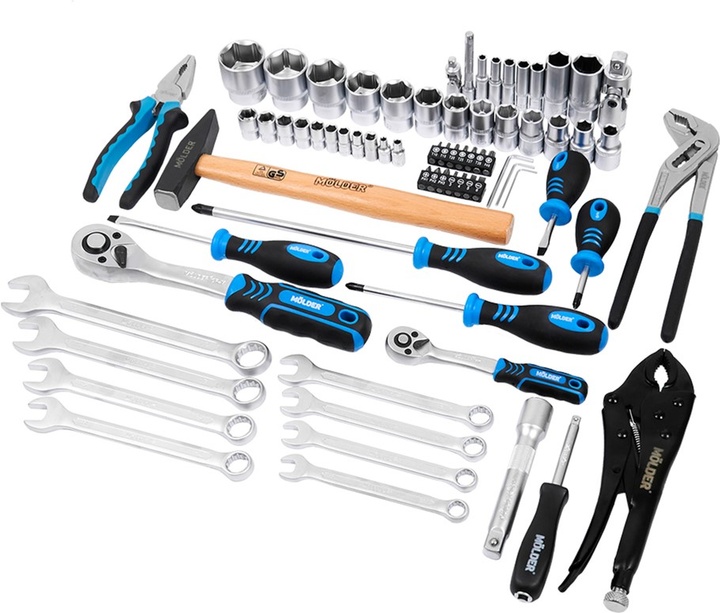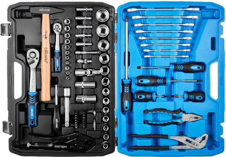 Профессиональный набор инструментов Molder – это самые востребованные ручные приборы, необходимые для работы в гараже, на СТО или для автомобиля. В комплектацию входит 72 предмета, хранящихся в пластиковом удароустойчивом кейсе. Все орудия изготовлены из хром-ванадиевой стали.