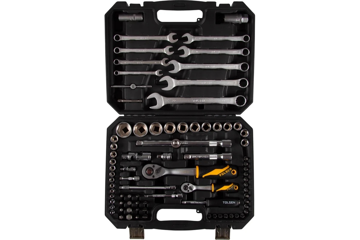 - Материалы – Cr-V (головки и принадлежности, ключи), S2 (биты), PP+TPR (рукояти), PE-HD (кейс)