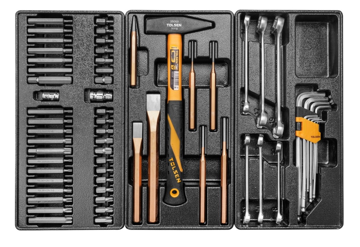 Стандартизация размеров ложементов позволяет разместить наборы на ваше усмотрение в любом варианте организации рабочего пространства – по типу, назначению или частоте использования. Вы всегда будете иметь под рукой тот инструмент или приспособление, которое вам необходимо в данную минуту, а ячейки ложементов позволят содержать набор в полном порядке.