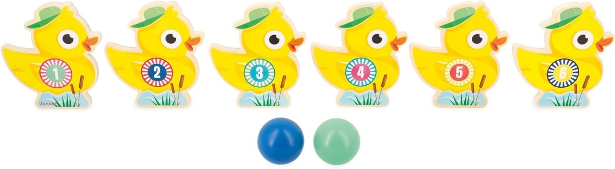 Утки в движении! Этот деревянный боулинг идеально подходит для детей от 3 лет и старше. Эта игра с 6 цветными и пронумерованными утками и 2 деревянными мячами идеально подходит для развития навыков малышей и зрительно-моторной координации. Бросая мячи, они научатся целиться и контролировать свою силу. Кроме того, разноцветные утки добавляют веселья и делают игру еще более увлекательной. Цель этой подвижной игры — сбить как можно больше кеглей за наименьшее количество бросков. Сложность можно регулировать, перемещая кегли ближе или дальше от игрока, нацеливаясь на числа в определенном порядке или даже суммируя очки! Благодаря этой игре на ловкость дети могут весело провести время, развивая свои навыки, как в одиночку, так и в компании двух игроков.