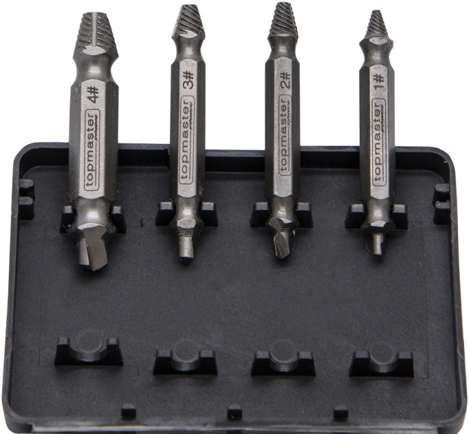 В состав набора входят 4 шт. экстракторов типовых размеров, для винтов.